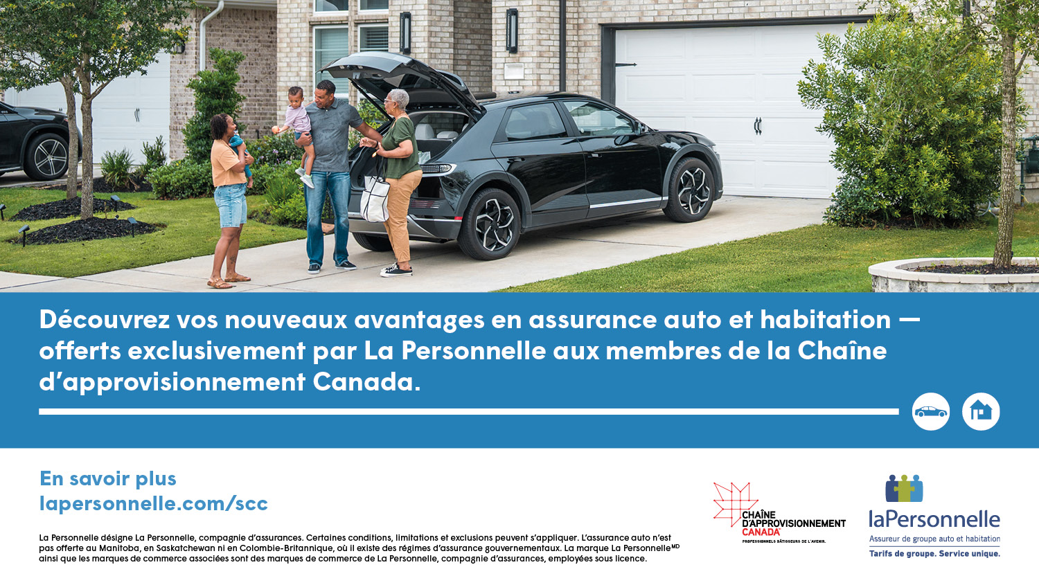 Chaîne d’approvisionnement Canada est heureuse d’annoncer un nouveau partenariat avec La Personnelle, l’un des principaux fournisseurs d’assurance auto et habitation pour groupes au Canada. Grâce à cette collaboration, les membres de Chaîne d’approvisionnement Canada ont désormais accès à des tarifs exclusifs en assurance auto et habitation, non offerts au grand public.